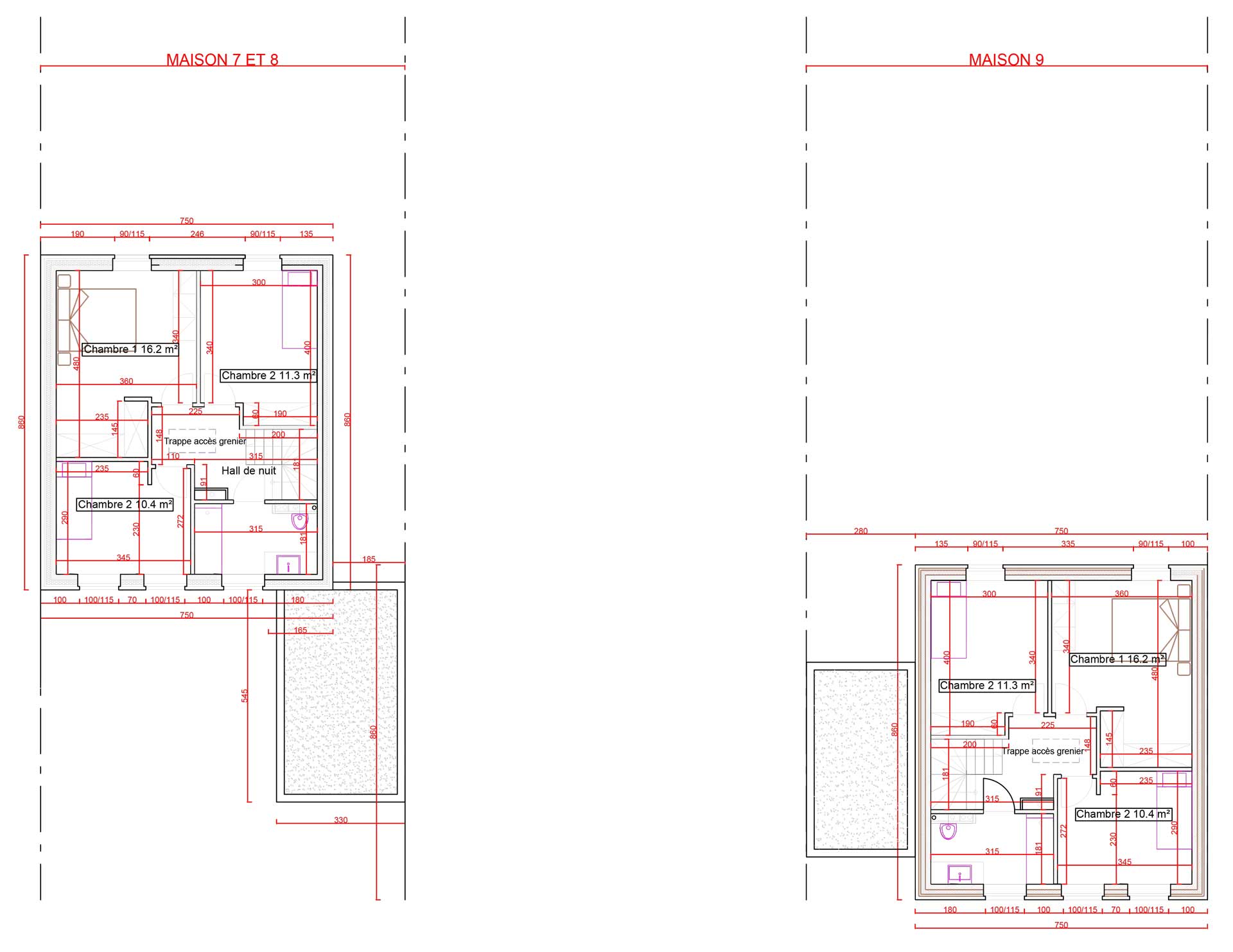 Vue plan maisons 7, 8 et 9 du ETAGE